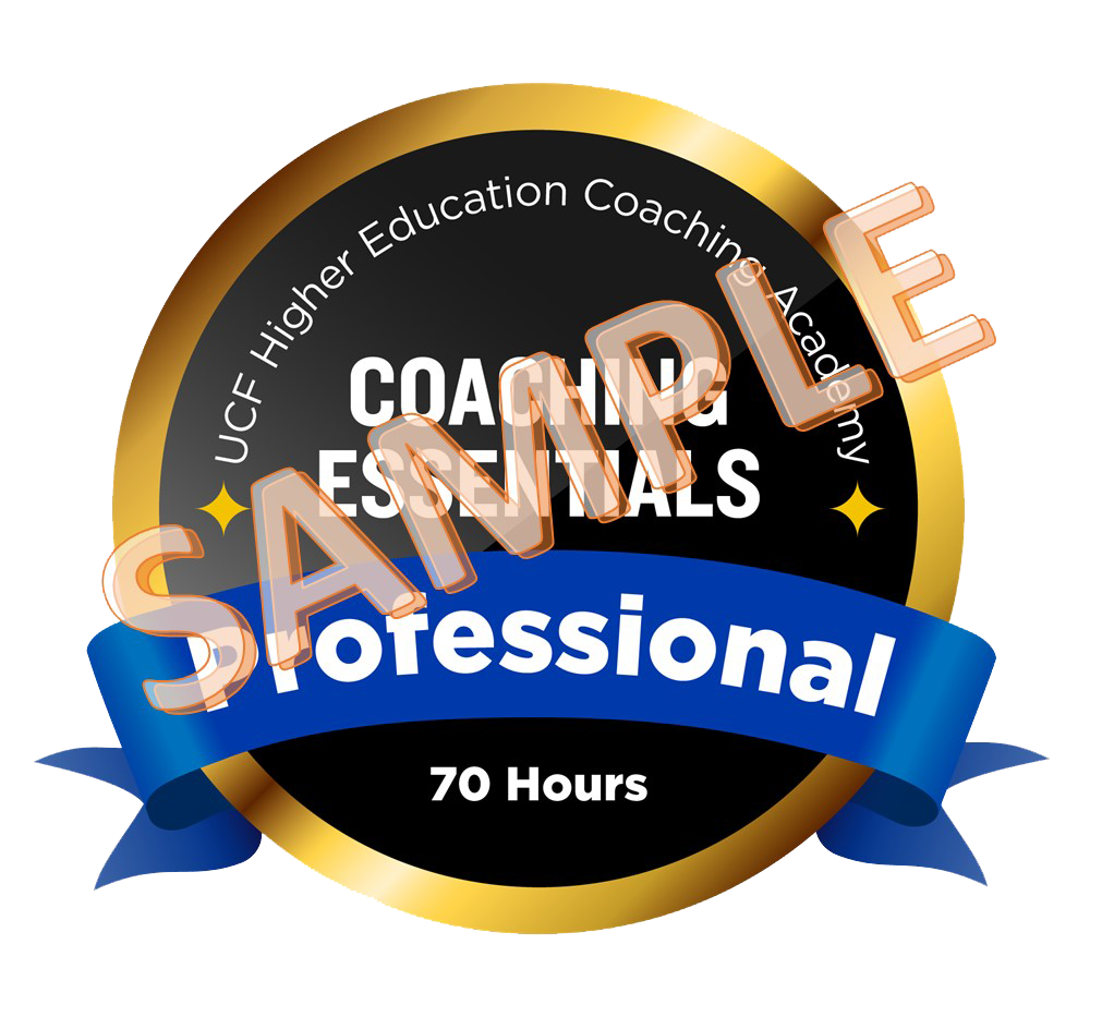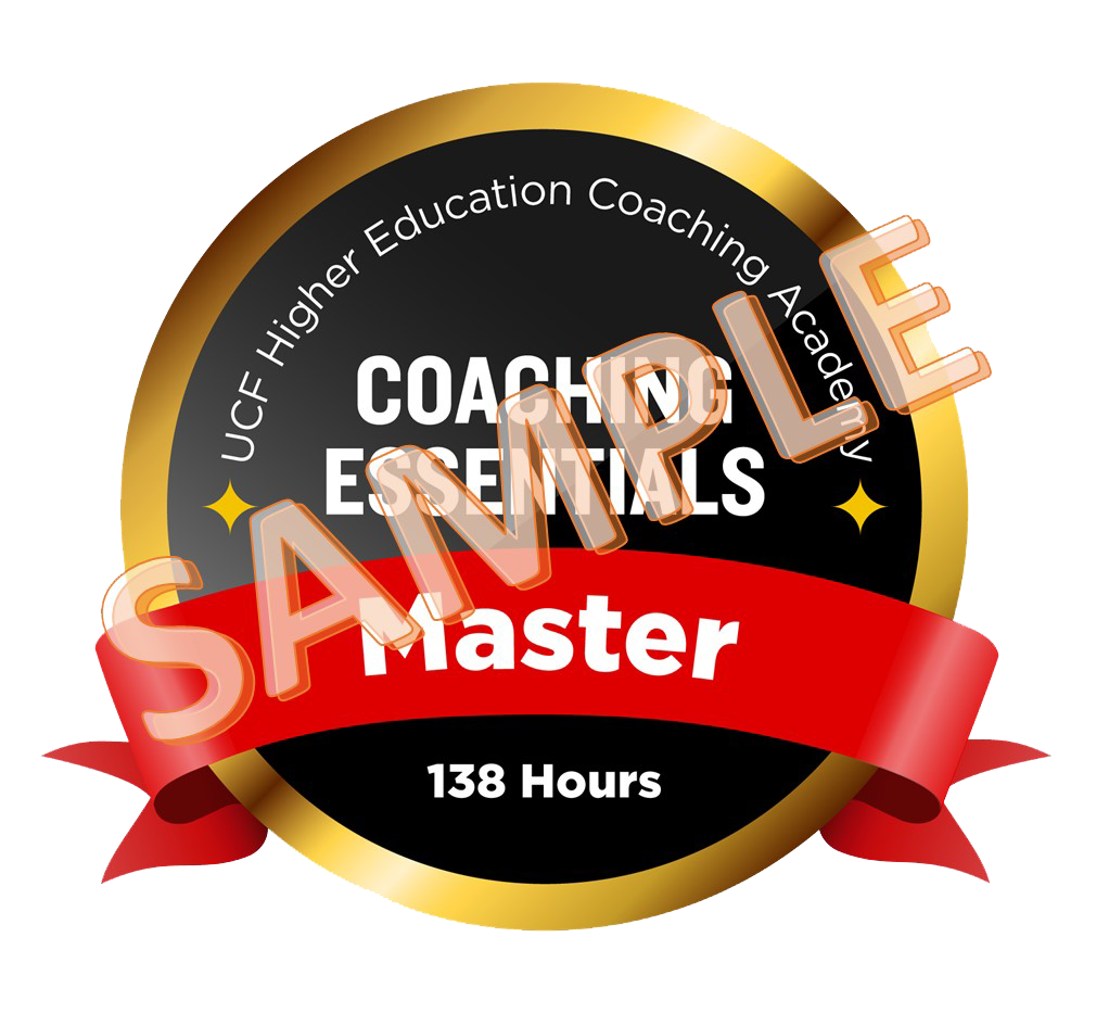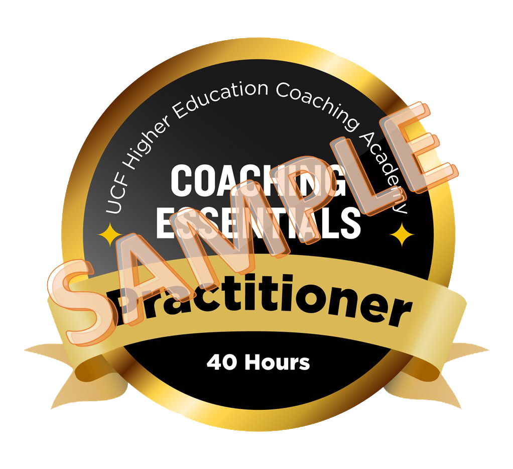 Participants who complete the UCF Higher Education Coaching Academy’s Coaching Essentials training programs receive both a Certificate of Completion through UCF’s Continuing Education Unit (4 CEUs), and a digital badge to exemplify mastery of skills and materials. These badges include: